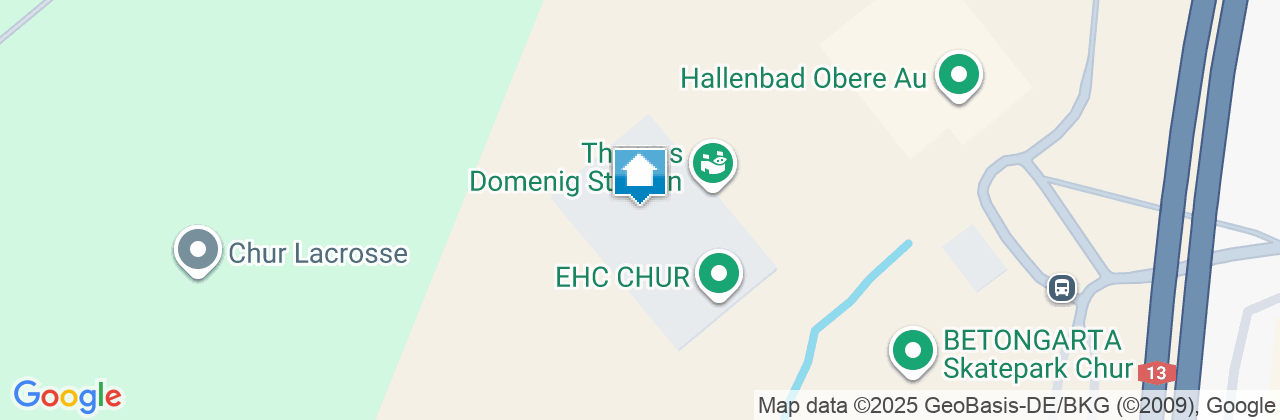 Das Hallenstadion in der Oberen Au gehört zu den Sport- und Eventanlagen Chur. Es ist das grösste Sportveranstaltungslokal in Chur und als Eishalle zudem das Zuhause des Churer Eishockeyclubs EHC Chur. Es bietet Platz für 2950 Zuschauer (Tribüne mit Sitzplätzen) und maximal 50 Personen auf dem Spielfeld, verfügt über ein Restaurant, welches während den Spielen geöffnet ist, und dient auch dem Eisclub Chur (ECC) als Trainings- und Wettbewerbsort. Eisfeld von September bis März. Betonboden von April bis August.