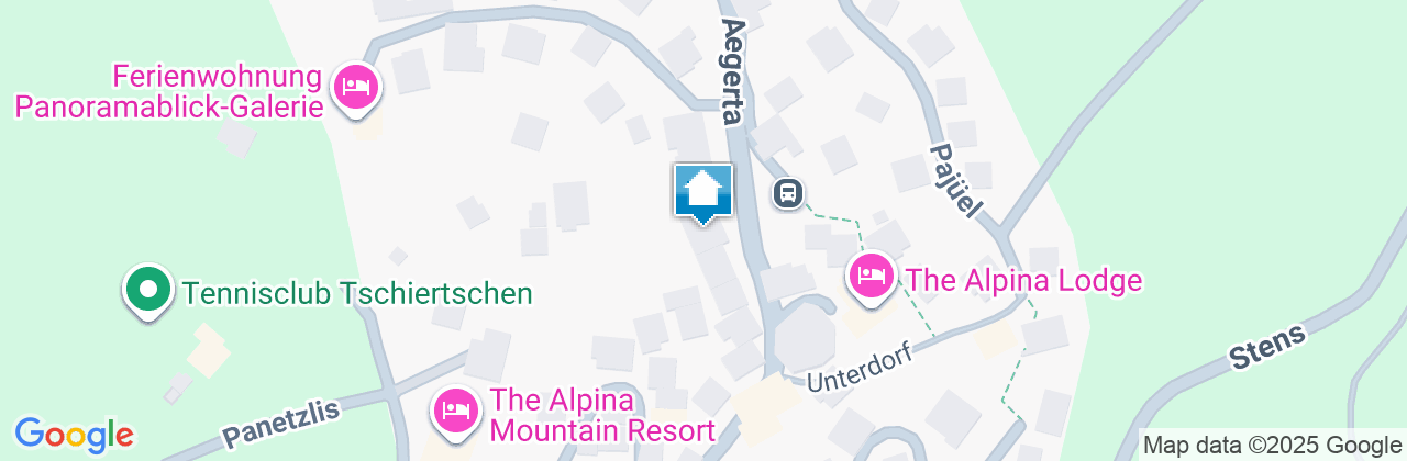 AnreiseAutobahn A13 Ausfahrt Chur-Süd, Richtung Lenzerheide, ca. 2 km nach Chur links nach Passugg, Praden, Tschiertschen abbiegen. Dieser Strasse folgen bis mitten ins Dorf Tschiertschen. Das Haus befindet sich oberhalb des Postautokehrplatzes.